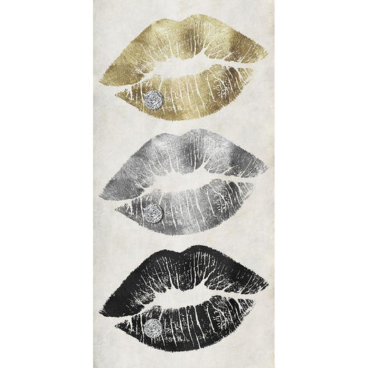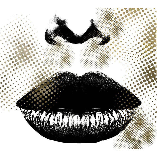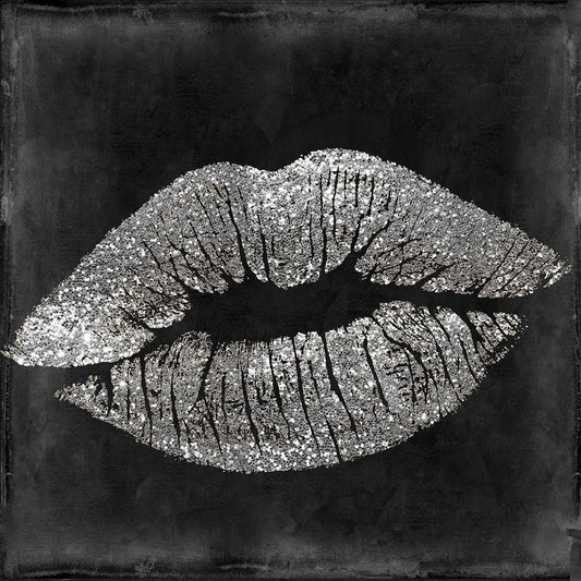 Silver Lips Black Modern Wood Framed Art Print by Sommers, Mindy