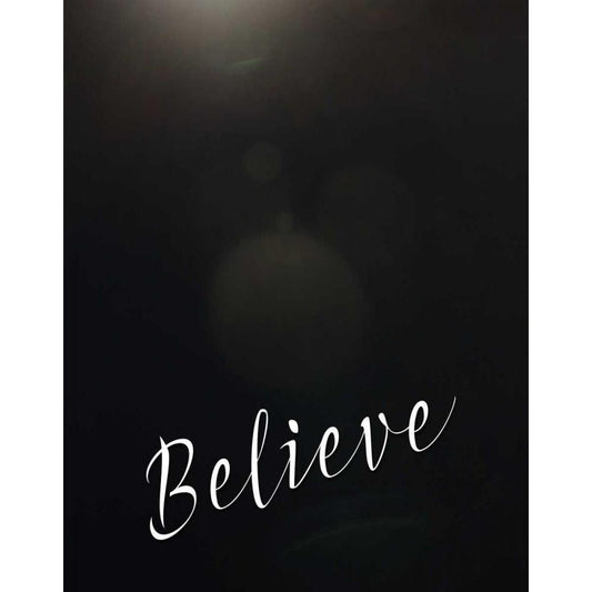 Believe Bokeh Black Modern Wood Framed Art Print by Moss, Tara