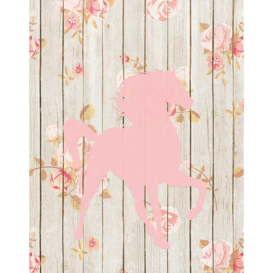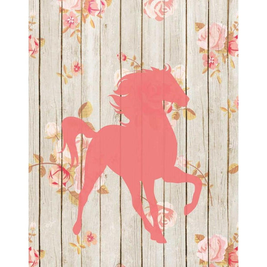 Pink Horse Floral Wood Black Modern Wood Framed Art Print by Moss, Tara