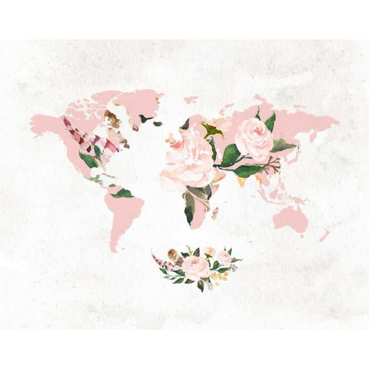 Floral Watercolor Map Black Modern Wood Framed Art Print by Moss, Tara