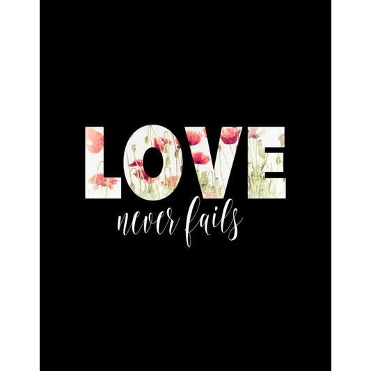 Love Never Fails Floral Black Modern Wood Framed Art Print by Moss, Tara