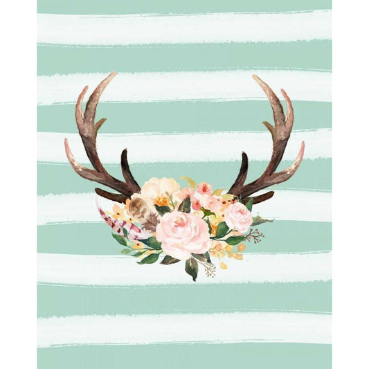 Antlers on Stripes Turquoise Black Modern Wood Framed Art Print by Moss, Tara