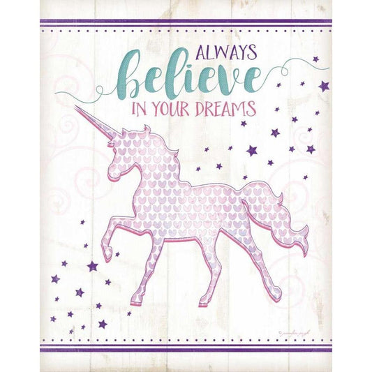 Believe Unicorn Black Modern Wood Framed Art Print by Pugh, Jennifer