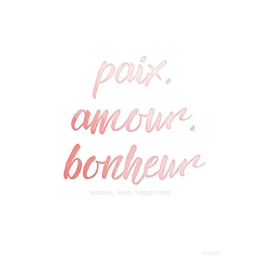 Paix Amour Bonheur Black Modern Wood Framed Art Print by Pugh, Jennifer