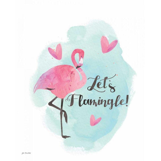 Lets Flamingo Black Modern Wood Framed Art Print by Moulton, Jo