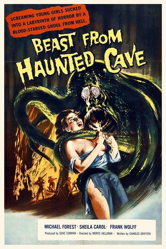 Beast from Haunted Cave White Modern Wood Framed Art Print with Double Matting by Hollywood Photo Archive