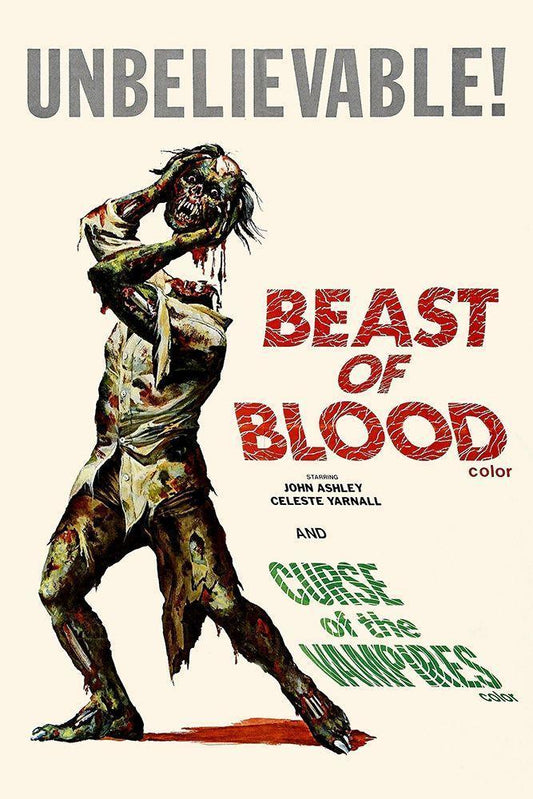 Double Feature - Beast of Blood and Curse of the Vampires White Modern Wood Framed Art Print with Double Matting by Hollywood Photo Archive