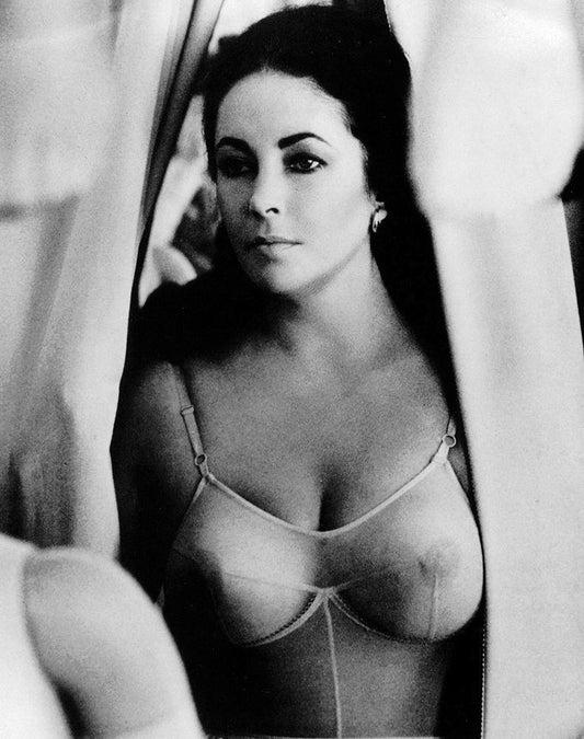 Elizabeth Taylor White Modern Wood Framed Art Print with Double Matting by Hollywood Photo Archive