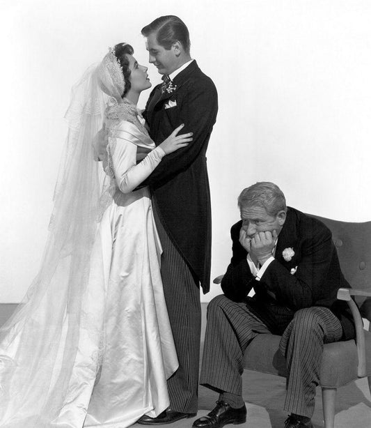 Father of the Bride - Elizabeth Taylor and Spence Tracey White Modern Wood Framed Art Print with Double Matting by Hollywood Photo Archive