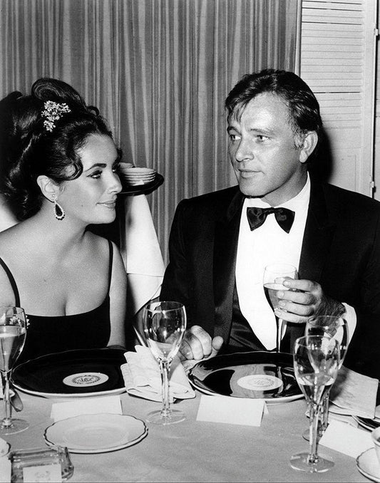 Elizabeth Taylor and Richard Burton White Modern Wood Framed Art Print with Double Matting by Hollywood Photo Archive