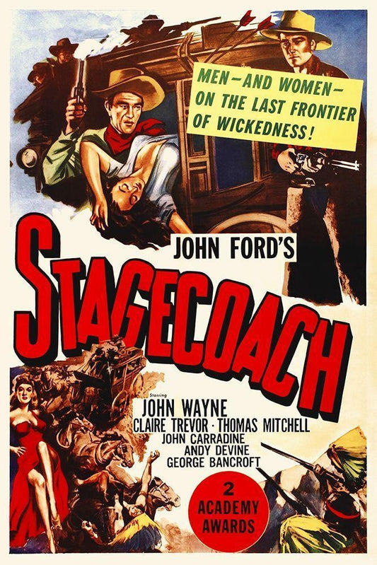 Stage Coach - John Wayne and Claire Trevor White Modern Wood Framed Art Print with Double Matting by Hollywood Photo Archive