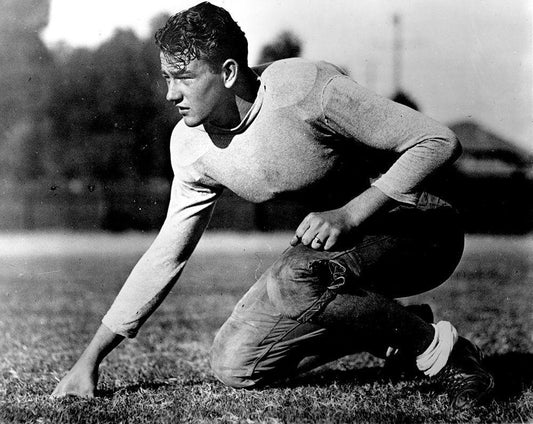 John Wayne - Football White Modern Wood Framed Art Print with Double Matting by Hollywood Photo Archive