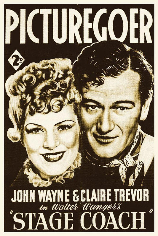 Stage Coach - John Wayne and Claire Trevor - Picturegoer Magazine Cover White Modern Wood Framed Art Print with Double Matting by Hollywood Photo Archive