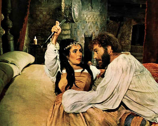The Taming of the Shrew - Elizabeth Taylor and Richard Burton White Modern Wood Framed Art Print with Double Matting by Hollywood Photo Archive