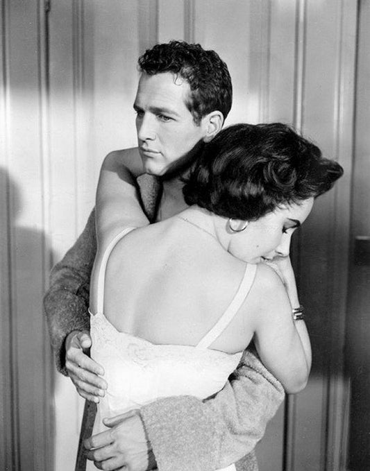 Elizabeth Taylor and Montgomery Clift White Modern Wood Framed Art Print with Double Matting by Hollywood Photo Archive