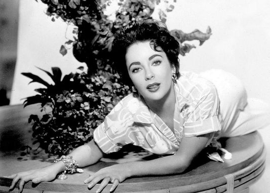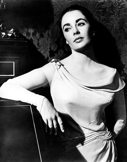 Elizabeth Taylor White Modern Wood Framed Art Print with Double Matting by Hollywood Photo Archive