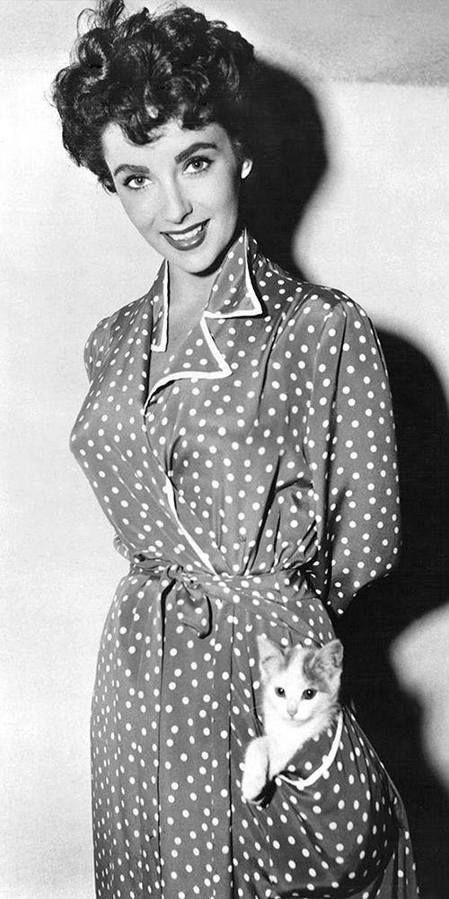 Elizabeth Taylor with a kitten in her pocket White Modern Wood Framed Art Print with Double Matting by Hollywood Photo Archive