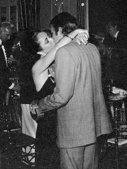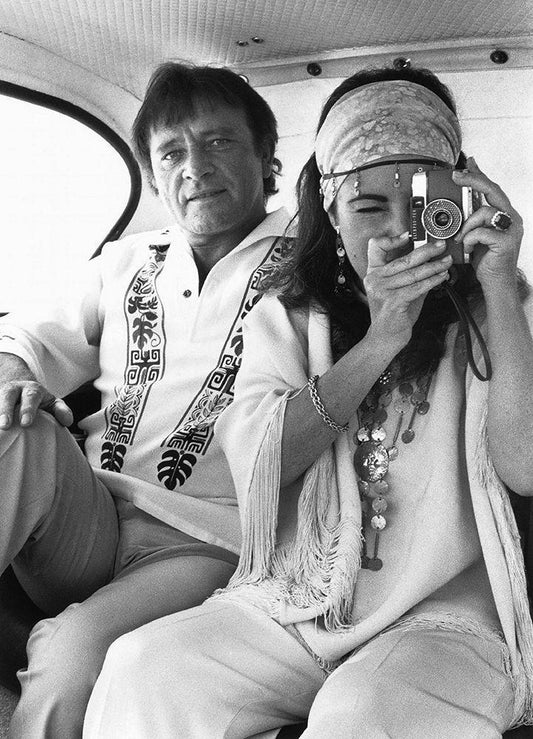 Elizabeth Taylor and Richard Burton in 1975 White Modern Wood Framed Art Print with Double Matting by Hollywood Photo Archive