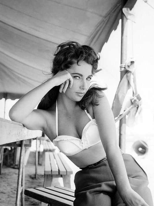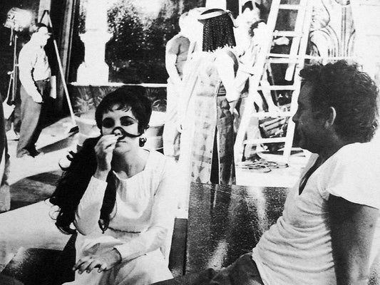 Elizabeth Taylor behind the scenes Cleopatra White Modern Wood Framed Art Print with Double Matting by Hollywood Photo Archive