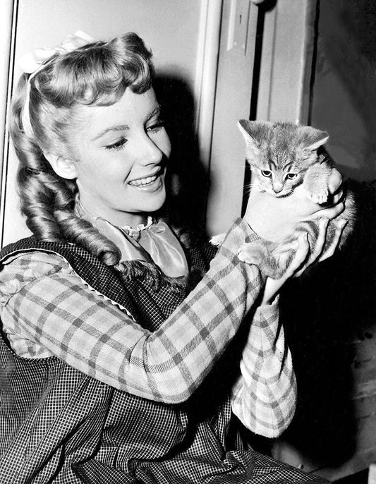 Elizabeth Taylor with kitten White Modern Wood Framed Art Print with Double Matting by Hollywood Photo Archive