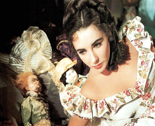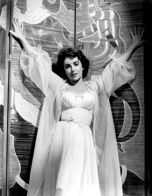 Wardrobe Test - Giant - Elizabeth Taylor White Modern Wood Framed Art Print with Double Matting by Hollywood Photo Archive