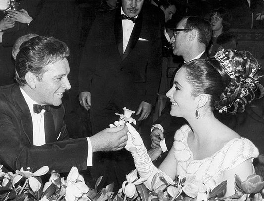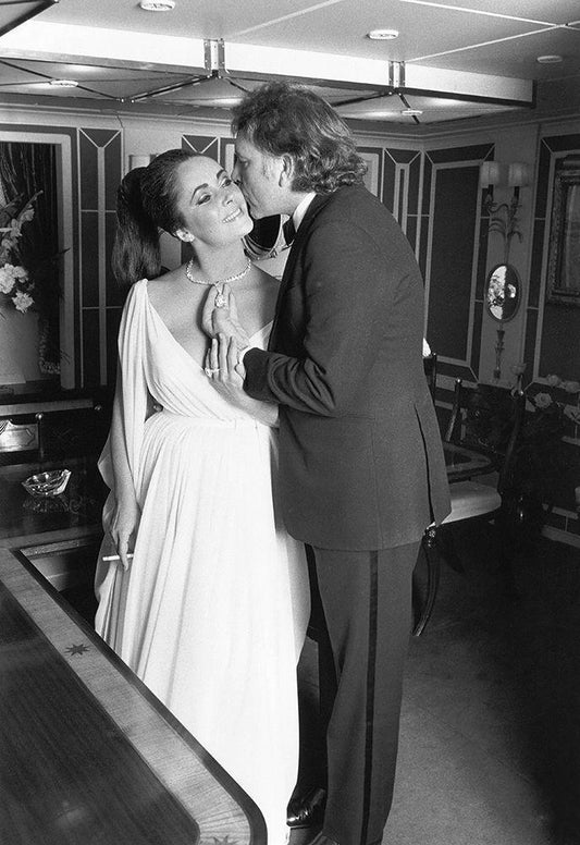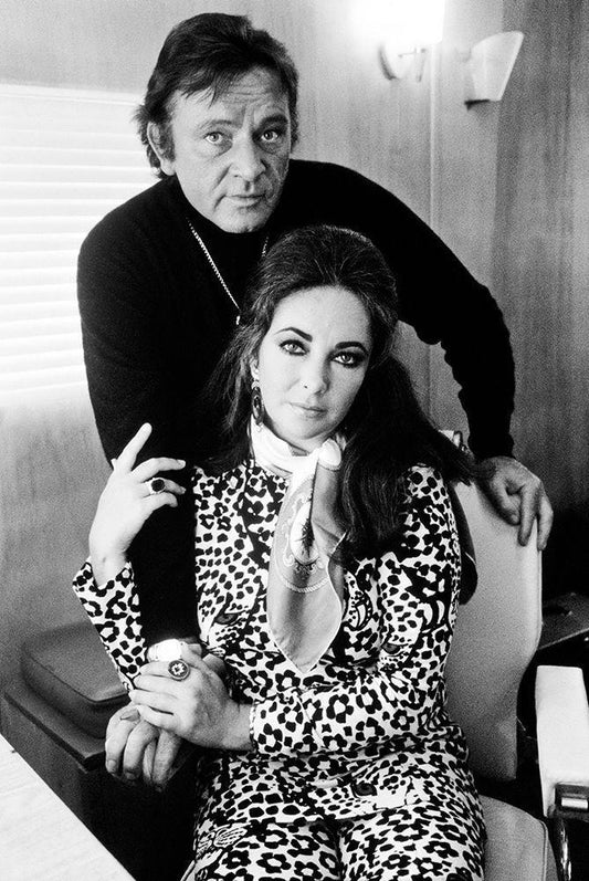 Elizabeth Taylor and Richard Burton White Modern Wood Framed Art Print with Double Matting by Hollywood Photo Archive