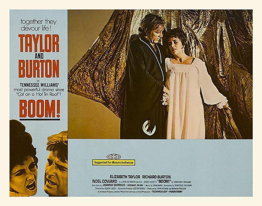 Elizabeth Taylor - Boom! - Lobby Card White Modern Wood Framed Art Print with Double Matting by Hollywood Photo Archive