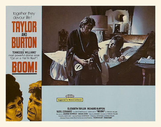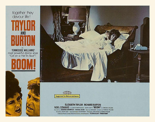 Elizabeth Taylor - Boom! - Lobby Card White Modern Wood Framed Art Print with Double Matting by Hollywood Photo Archive