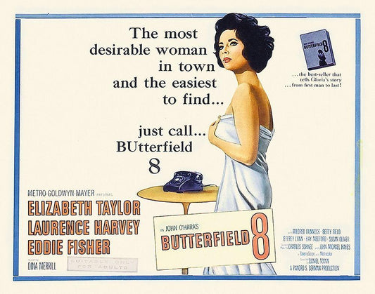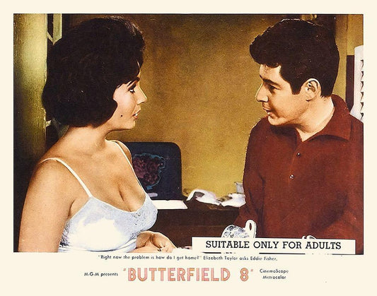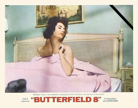 Elizabeth Taylor - Butterfield 8 - Lobby Card White Modern Wood Framed Art Print with Double Matting by Hollywood Photo Archive