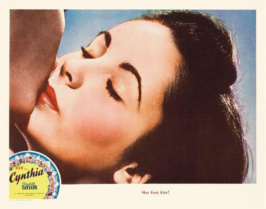Elizabeth Taylor - Cynthia - Lobby Card White Modern Wood Framed Art Print with Double Matting by Hollywood Photo Archive