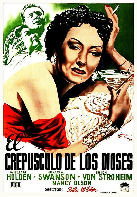 Spanish - Sunset Boulevard - Poster White Modern Wood Framed Art Print with Double Matting by Hollywood Photo Archive