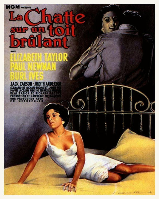 French - Cat on a Hot Tin Roof White Modern Wood Framed Art Print with Double Matting by Hollywood Photo Archive