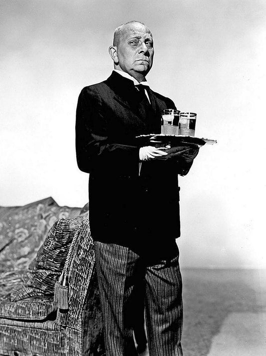 Sunset Boulevard - Gloria Swanson with Buster Keaton White Modern Wood Framed Art Print with Double Matting by Hollywood Photo Archive