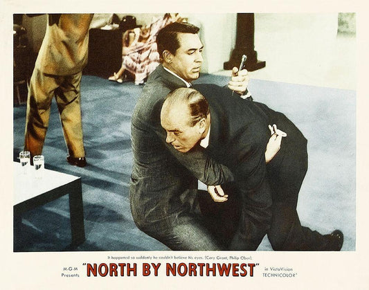 North by Northwest - Lobby Card White Modern Wood Framed Art Print with Double Matting by Hollywood Photo Archive