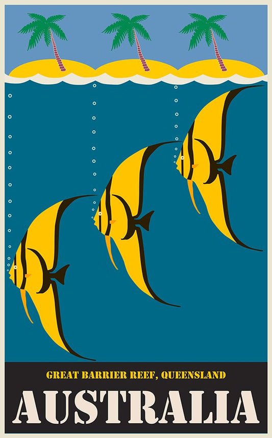 Australia Travel Poster White Modern Wood Framed Art Print with Double Matting by Vintage Travel Posters