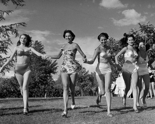 Bathing Beauties at the Seaside White Modern Wood Framed Art Print with Double Matting by Vintage Photography