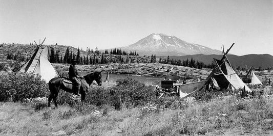 Mt. Hood with Forest Ranger White Modern Wood Framed Art Print with Double Matting by Vintage Photography