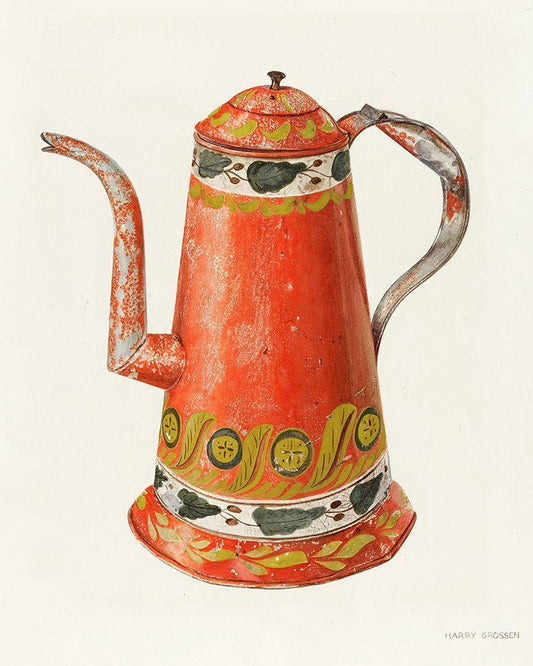 Toleware Tin Coffee Pot 1938 White Modern Wood Framed Art Print with Double Matting by Grossen, Harry