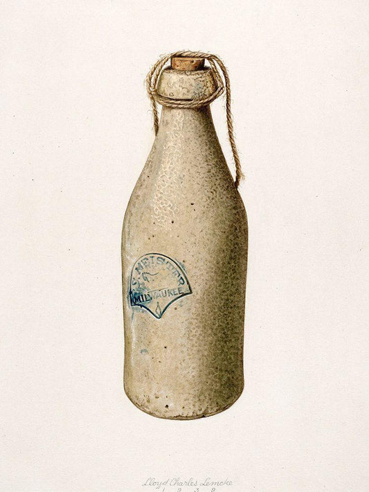 Weiss Beer Bottle 1939 White Modern Wood Framed Art Print with Double Matting by Lemcke, Lloyd Charles