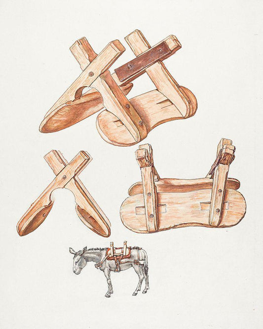 Unrigged Pack Saddle 1932 White Modern Wood Framed Art Print with Double Matting by Vintage Drawings