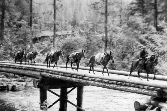 Wagon on Trail from Diamond Lake White Modern Wood Framed Art Print with Double Matting by Vintage Photography