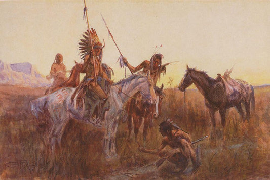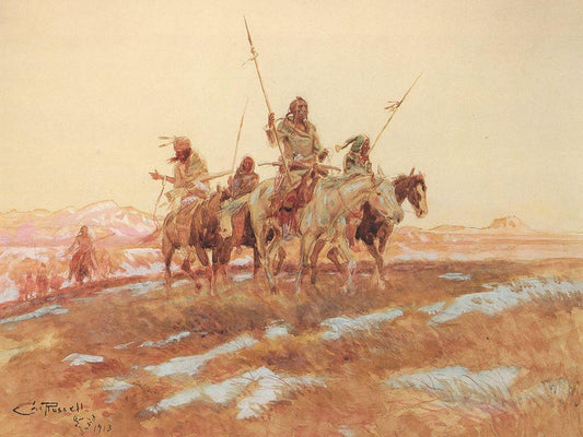 Piegan Hunting Party White Modern Wood Framed Art Print with Double Matting by Russell, Charles Marion