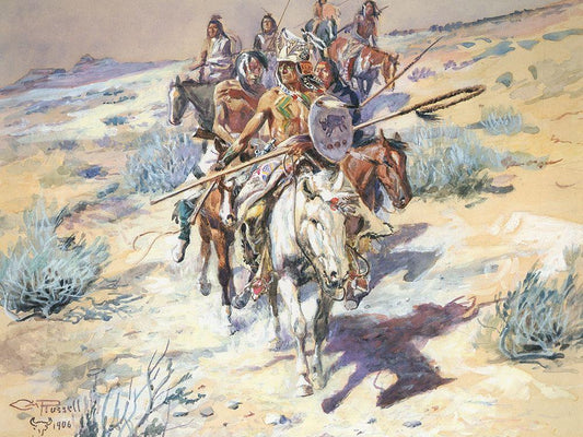 Return of the Warriors White Modern Wood Framed Art Print with Double Matting by Russell, Charles Marion