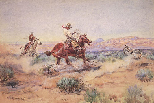 Jerked Down White Modern Wood Framed Art Print with Double Matting by Russell, Charles Marion