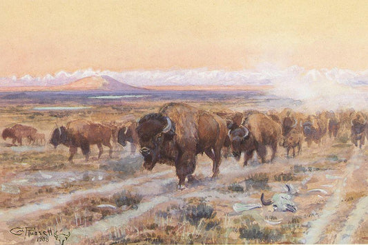 The Bison Trail White Modern Wood Framed Art Print with Double Matting by Russell, Charles Marion