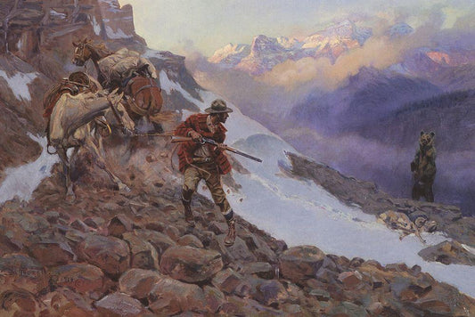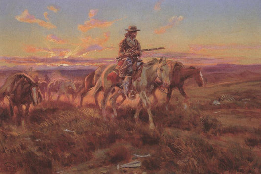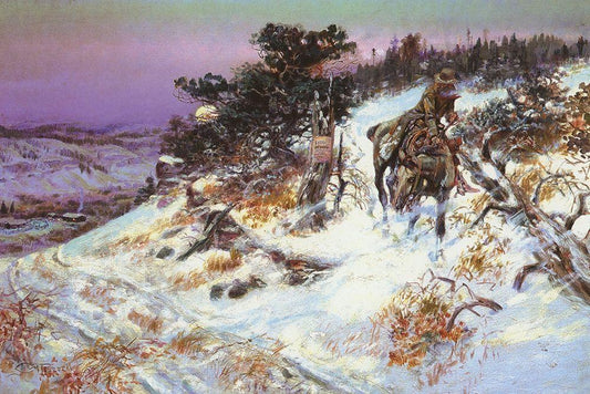 The Lost Trail White Modern Wood Framed Art Print with Double Matting by Russell, Charles Marion