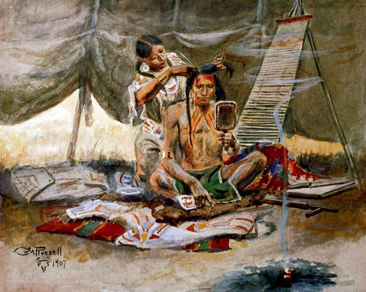 The Beauty Parlor 1907 White Modern Wood Framed Art Print with Double Matting by Russell, Charles Marion