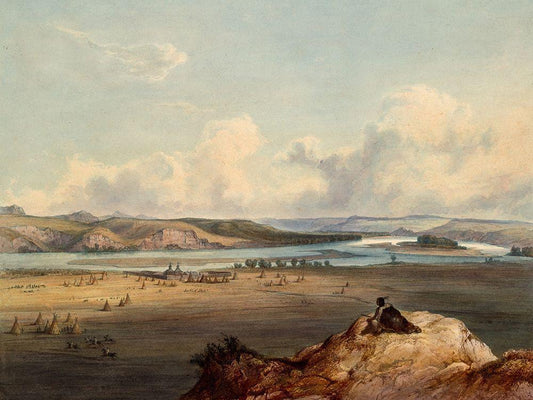 Camp of the Gros Ventres of the prairies White Modern Wood Framed Art Print with Double Matting by Bodmer, Karl