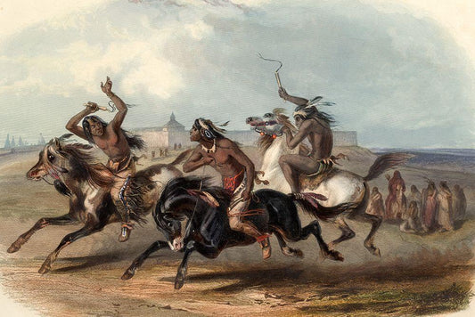 Horse racing of the Sioux indians White Modern Wood Framed Art Print with Double Matting by Bodmer, Karl