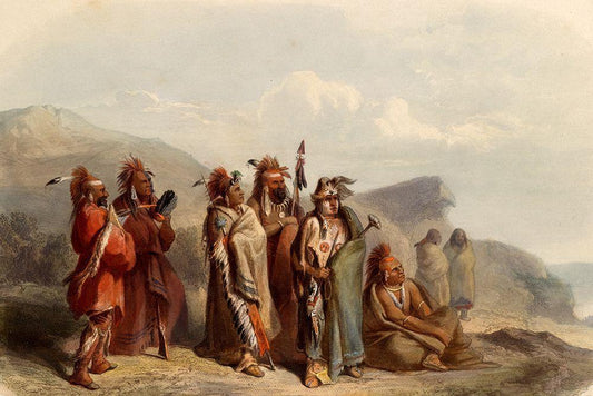 Saukie and Fox Indians White Modern Wood Framed Art Print with Double Matting by Bodmer, Karl